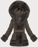 Zimowa damska kurtka z paskiem J Style czekoladowa (5M3227-158)
