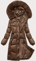Damska kurtka zimowa z ozdobnymi paskami brązowa (23MY-208)