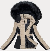 Krótka zimowa kurtka damska ze ściągaczami S'west beżowa (B8288-12)