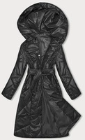 Błyszcząca kurtka damska z kapturem czarna (5M3172-392)