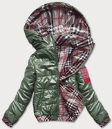 Pikowana dwustronna kurtka damska khaki-żółta (m20-7636-22+75)