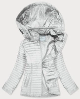 Metaliczna kurtka damska z kapturem szara (b8007-70)