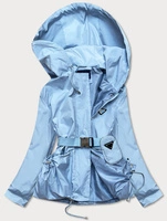 Krótka kurtka damska z paskiem błękitna (ag3-03)