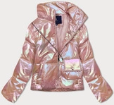 Opalizująca damska kurtka z torebką różowa (ag3-07)