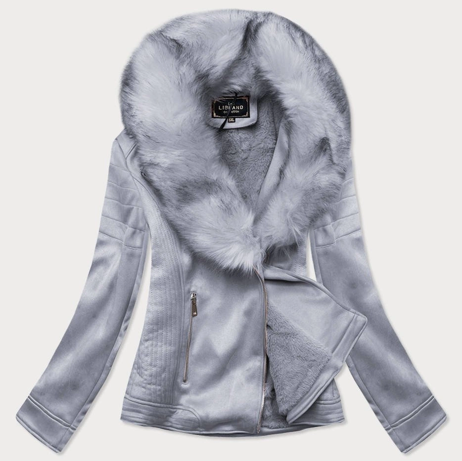 Zamszowa damska ramoneska z futerkiem wrzosowa (6502big)