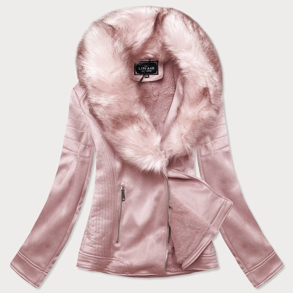 Zamszowa damska ramoneska z futerkiem pudrowy róż (6502big)