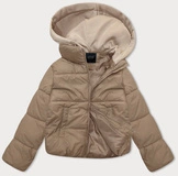 Krótka zimowa kurtka damska z dresowym kapturem J Style ciemny beż (16M9187-158)