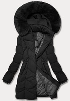 Damska kurtka zimowa z ozdobnymi paskami czarna (23MY-208)