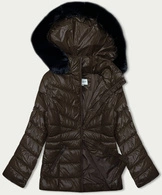 Zimowa kurtka damska z futrzaną podszewką brązowa (LHD-23063)