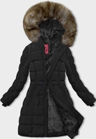 Zimowa kurtka damska z futrzaną podszewką czarna (LHD-23063)