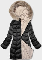Zimowa dwustronna kurtka damska z kapturem czarny-beż (B8203-1046)