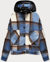 Damska kurtka koszulowa w kratę niebieska (AG3-1813)