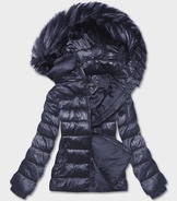 Kurtka damska z ozdobnym kapturem ciemna niebieska (B8126-72)