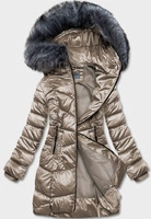 Metaliczna kurtka zimowa damska beżowa (B8072-12)