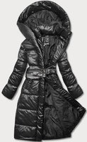 Taliowana kurtka zimowa z paskiem czarna (l22-9869-1)