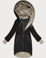 Pikowana kurtka z kapturem fason trapez czarna (T2-2290#-1)