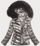 Błyszcząca damska kurtka zimowa z kapturem srebrna (5m773-401)