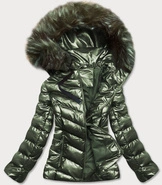 Damska kurtka zimowa z futrzaną stójką army (5M769-136)