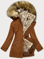 Zimowa kurtka damska z futrzaną podpinką karmelowa (m-21005)
