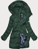 Zimowa parka damska na futrze zielona (m21312)