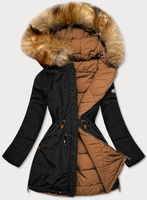Dwustronna kurtka damska zimowa karmel-czarna (m-210a5)