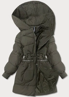 Damska kurtka parka zimowa z kapturem khaki (b531-11)