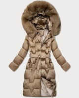 Długa gruba kurtka zimowa z paskiem Minority beżowa (P3-6033-62)
