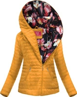 Zimowa kurtka damska z łączonych materiałów żółta (7708)