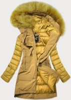 Zimowa kurtka damska z łączonych materiałów żółta (7708)