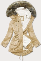 Zimowa damska parka z podpinką i kapturem beżowa (7626BIG)