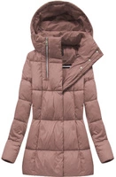 Długa damska kurtka zimowa z kapturem antyczny róż (7752)