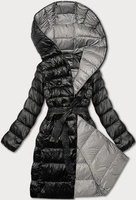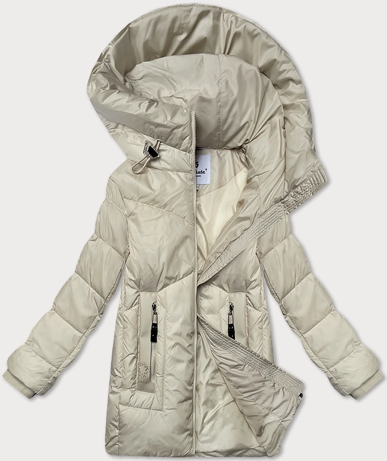 Damska kurtka zimowa z kapturem ciemny beż (5M3169-84)