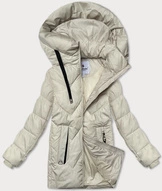 Długa zimowa kurtka damska z kapturem Libland ecru (7832)
