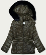 Zimowa kurtka damska z kapturem khaki (2M-21013)