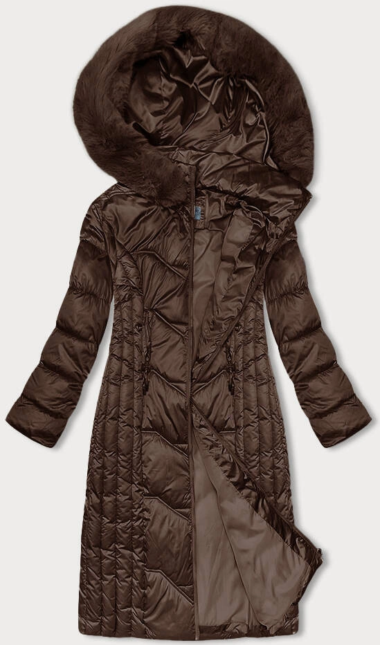 Taliowana długa kurtka zimowa brązowa S'west (B8201-14)