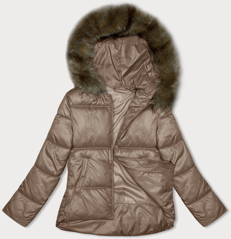 Kurtka zimowa damska z futerkiem khaki (V715)