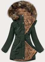 Zimowa kurtka damska z futrzaną podpinką army (m-21005)