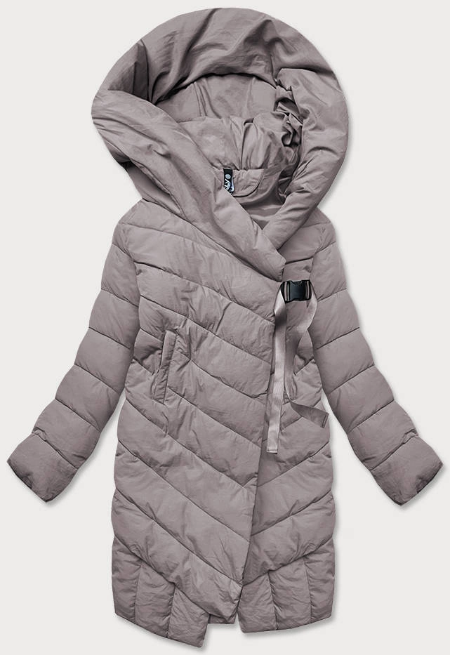 Kurtka zimowa damska z kapturem cappuccino (fm09-3)