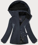Zimowa kurtka damska z kapturem granatowa (m-21308)