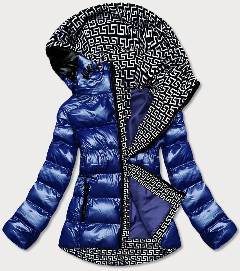 Metaliczna kurtka damska z kapturem niebieska (xw808x)