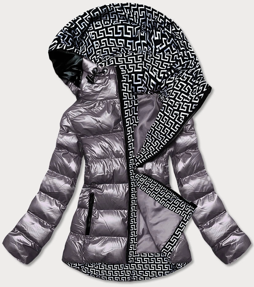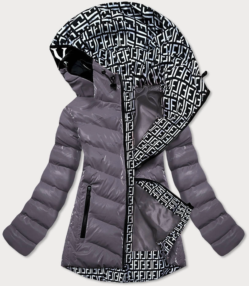 Dwustronna damska kurtka zimowa granatowo-szara (mhm-w556)