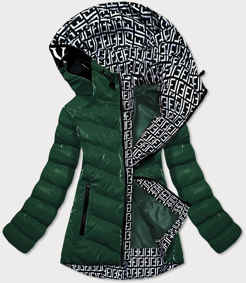 Krótka zimowa kurtka damska z nerką zielona (omdl-018)