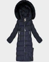 Długa pikowana zimowa kurtka damska granatowa (7689)