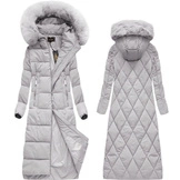 Długa damska kurtka zimowa z kapturem szara (7688BIG)