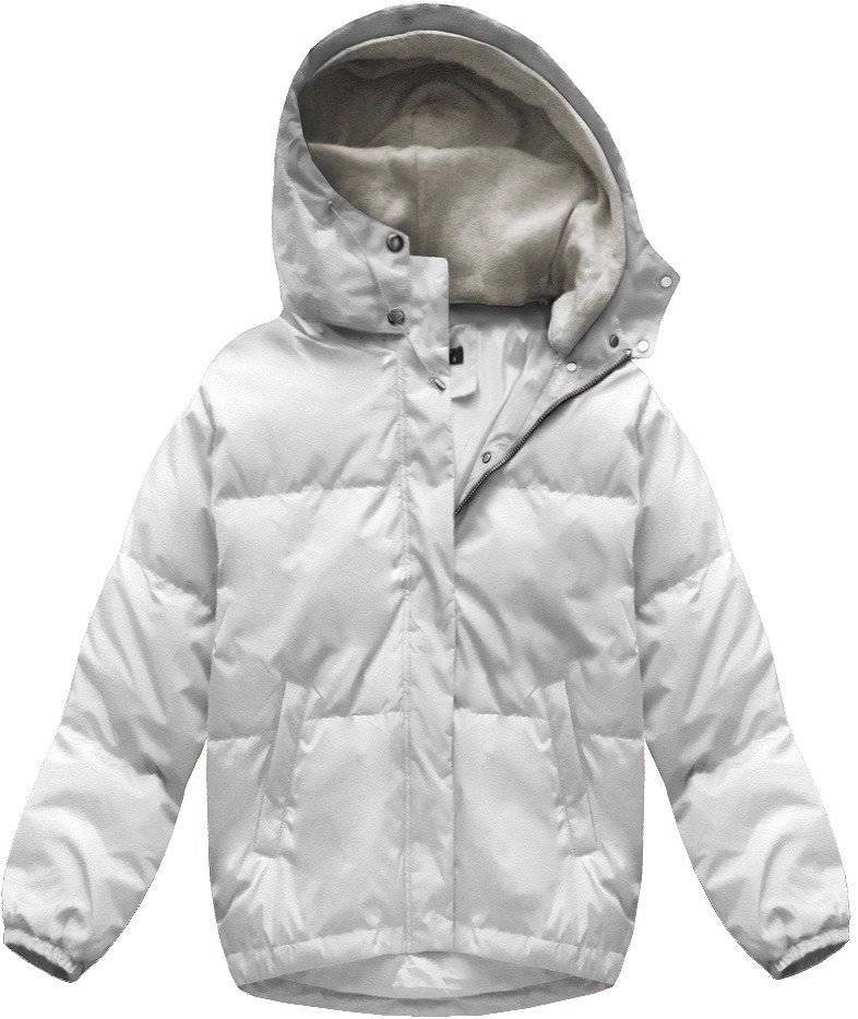 Krótka kurtka damska zimowa z puchem naturalnym biała (7113)