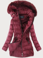 Bawełniana damska parka zimowa z futrem bordowa (xw801-3x)