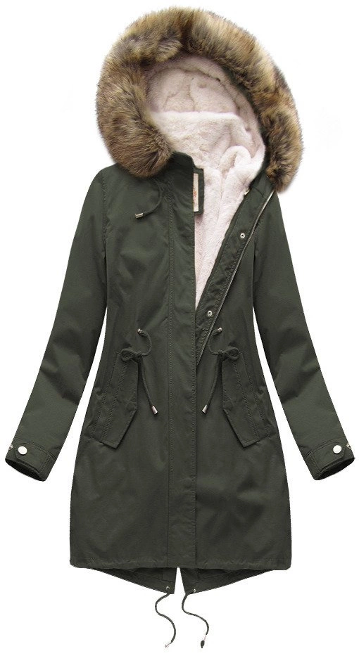 Zimowa damska parka z podpinką i kapturem army (7626BIG)