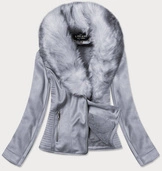 Zamszowa ramoneska damska z futerkiem wrzosowa (6501big)
