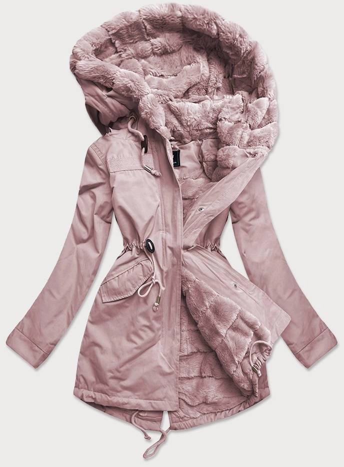 Parka damska przejściowa pudrowy róż (w806)