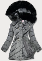 Pikowana kurtka damska zimowa z kapturem szara (w732)